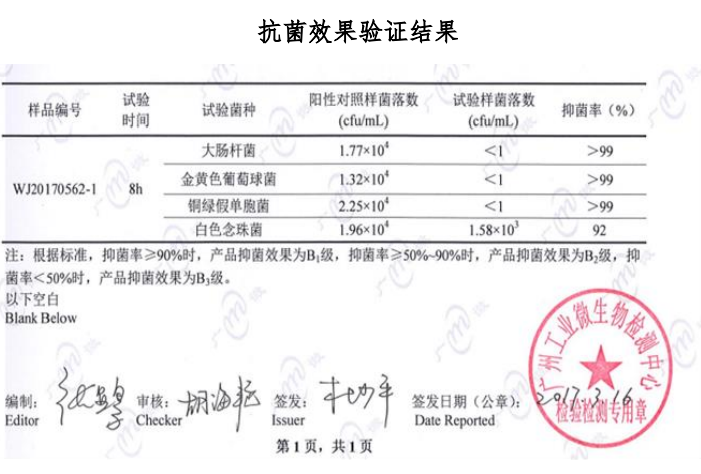 本產(chǎn)品以是高品質(zhì)新材料為主要原料,采用高科技技術(shù)生產(chǎn)而成具有穩(wěn)定的化學(xué)性能,熱穩(wěn)定性高,抗菌性能達(dá) 99%,可達(dá) B1 級;可以負(fù)載銅、鋅、銀等金屬離子制備抗菌材料;可添加到塑料、橡膠、纖維、涂料、紙張、膠粘劑、陶瓷和玻璃制品中用作抗菌功能材料;以及銀鋅無機(jī)抗菌劑、稀土復(fù)合無機(jī)抗菌劑、抗菌纖維母粒、織物抗菌整理劑、羽絨抗菌除臭整理劑等;可以經(jīng)高溫煅燒而生成的抗菌劑;已用在防靜電鞋、導(dǎo)電鞋、抗菌內(nèi)衣、襪子、手術(shù)服、敷料、鞋墊和化妝品等各類商品中。